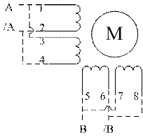 1和3相連,2和4相連,分別接A和/A;5和7相連,6和8相連,分別接B和/B。 |